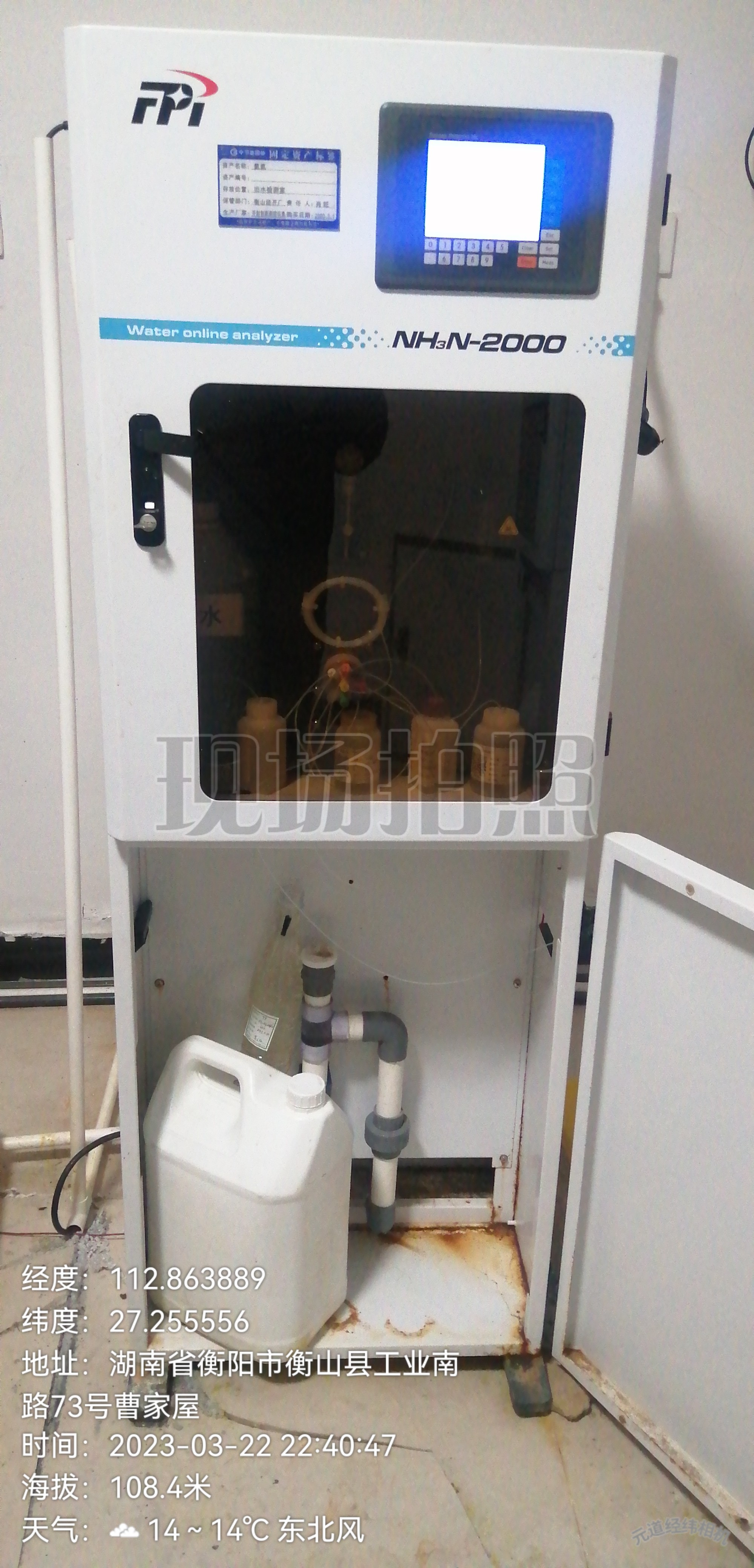 在線分析儀進水軟管插入在用礦泉水瓶裝的自制液體內