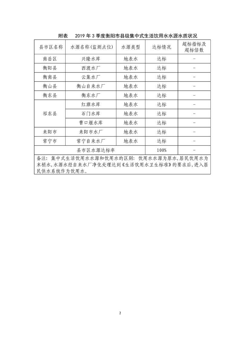 2019年3季度衡陽(yáng)市縣級(jí)水源地水質(zhì)狀況報(bào)告